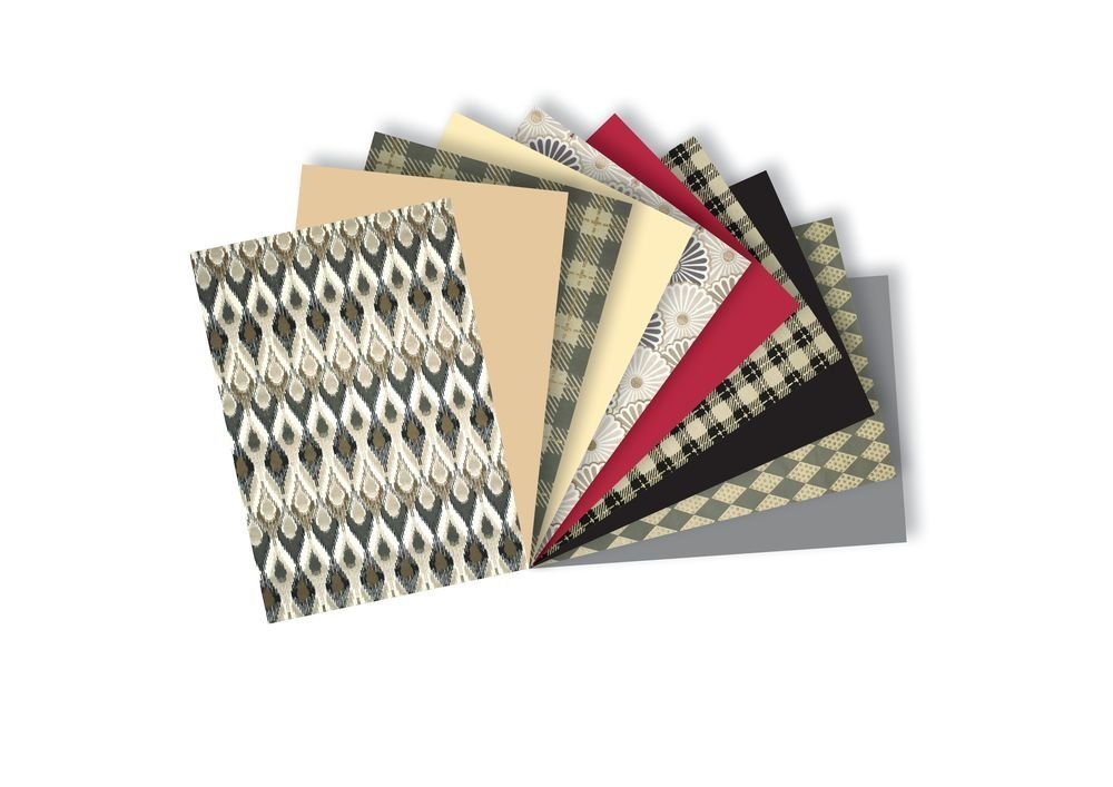 Blok se dvěmi druhy papírů – barevnými a potištěnými s metalickým, brokátovým či sametovým efektem. Oba druhy jsou vždy barevně sladěny. Papíry jsou velmi odolné a vydrží i několikanásobné ohýbání. Jsou ideální při tvoření pozvánek, pohlednic, různých dekorací a ozdob a výborně se hodí také na scrapbooking.