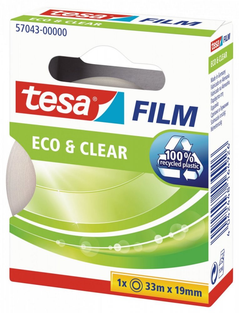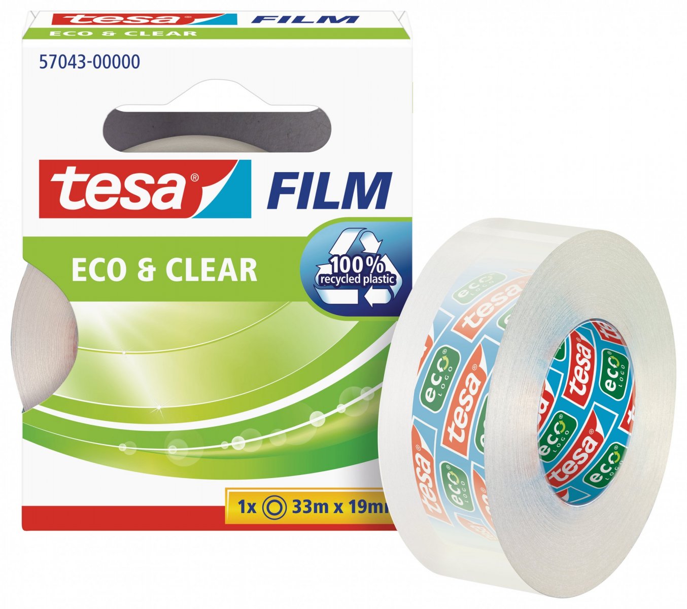 tesafilm® Eco&Clear, čirá ekologická kancelářská páska, 33m x 19mm