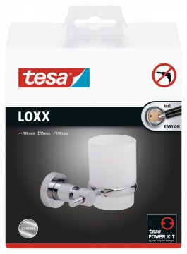 Zaoblený držák na zubní kartáčky tesa® Loxx kombinuje saténové sklo pohárku s lesklým chromovaným povrchem kovové konzoly. To vše se spojuje v krásný, hravý design. Díky lepicímu montážnímu řešení lze držák pohárku zubního kartáčku připevnit tam, kde je to nejvhodnější. Lepidlo zaschne za 12 hodin. Vzhledem k tomu, že vrtání odpadá, nedochází k poškození stěn či obkladů. Držák je možné kdykoli beze stop demontovat. Rovněž s novým adaptérem BK20 může být držák umístěn bez problémů na jiném místě.