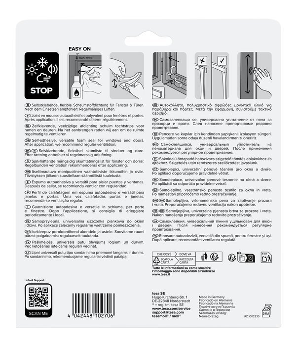 IZOLAČNÍ Samolepicí pěnové těsnění M utěsní netěsnící okna a dveře a ochrání před chladem, teplem, hlukem i vlhkostí. Pevná samolepicí vrstva umožňuje snadné nalepení – stačí pouze nůžky pro odstříhnutí požadovaného rozměru. Po důkladném očištění povrchu od prachu, mastnoty a nečistot lze těsnění ihned nalepit. Vhodné pro mezery o šířce 1–5 mm mezi rámy a křídly oken. Hodí se téměř pro všechny typy oken a dveří. Praktický způsob, jak udržet interiér příjemně teplý během zimních měsíců.
