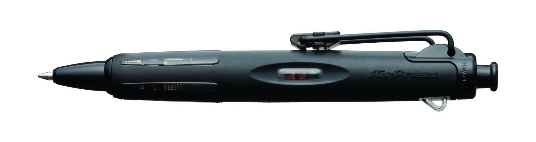 Kuličkové pero se speciálním tlakovzdušným mechanismem.